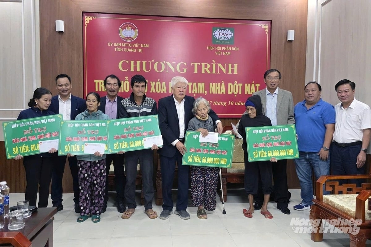 Hiệp hội Phân bón Việt Nam hỗ trợ 5 gia đình là hộ nghèo, mỗi gia đình 60 triệu đồng để thực hiện chương trình xóa nhà tạm, nhà dột nát.